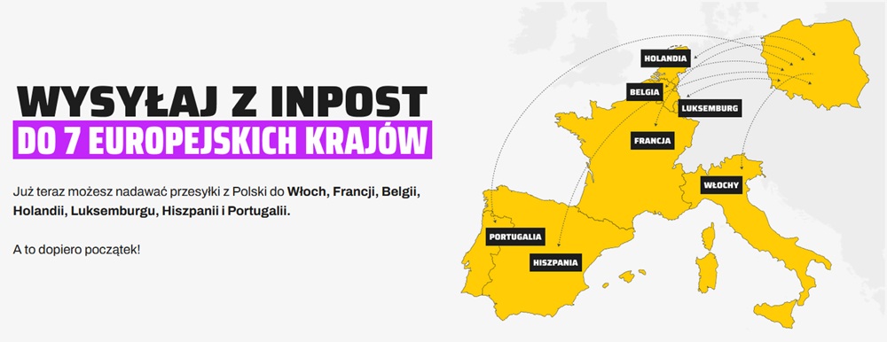 A fanom Paczkomatów polecamy usługę InPost International do 7 krajów: Francji, Hiszpanii, Włoch, Portugalii, Holandii, Belgii, Luksemburga.