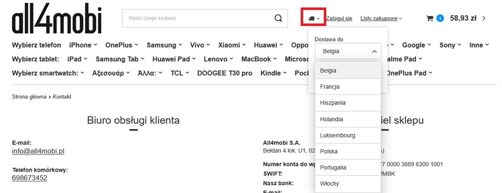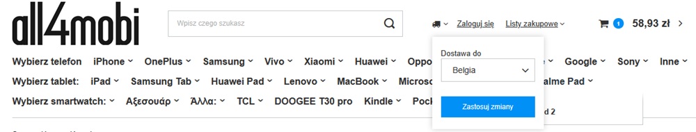 W sklepie All4mobi możesz zamówić przesyłki za granicę do wszysetkich krajów Unii Europejskiej, a także zapłacić w wybranej przez Ciebie walucie.