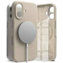 Etui Ringke do iPhone 16, Silicone MagSafe, beżowe + Szkło Hartowane 9H