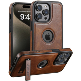 Etui Suteni G2 MagSafe do iPhone 15 Pro – brązowe, skórzane, magnetyczne, z funkcją podstawki